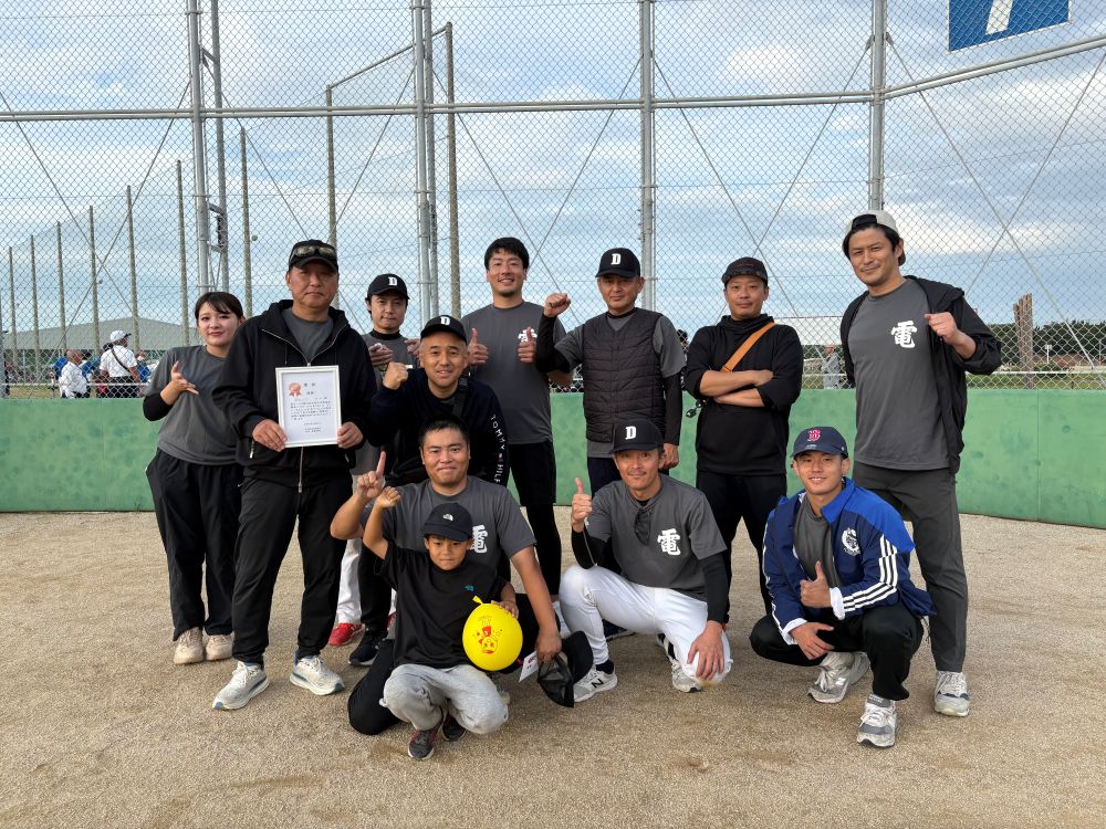 小雨そぼ降る中、庄山副会長の開会宣言を皮切りに、今年も14チーム303名の参加者が集い第44回親善ソフトボール大会が開幕しました。午後からは曇り空から晴れ間の見える好天に恵まれ、熱戦が繰り広げられました。Aブロックからは、硬い守備力で西部毎日広告社が1位通過、Bブロックからはいずれの試合も1点差という僅差で勝ち抜いたオムニコム、Cブロックからは前年準優勝の実力で、九州博報堂Aチームが決勝トーナメントに進出しました。そして、注目のワイルドカードは、電通九州と西鉄エージェンシーの一騎打ちジャンケンの結果、電通九州のトーナメント進出が決定しました。決勝戦は、奇しくもBブロック1回戦と同じ組み合わせ電通九州対オムニコム。1回戦では、オムニコムが1点差で勝ちましたが、決勝では電通九州が10得点の圧勝。4年振りの王座奪還となりました。
