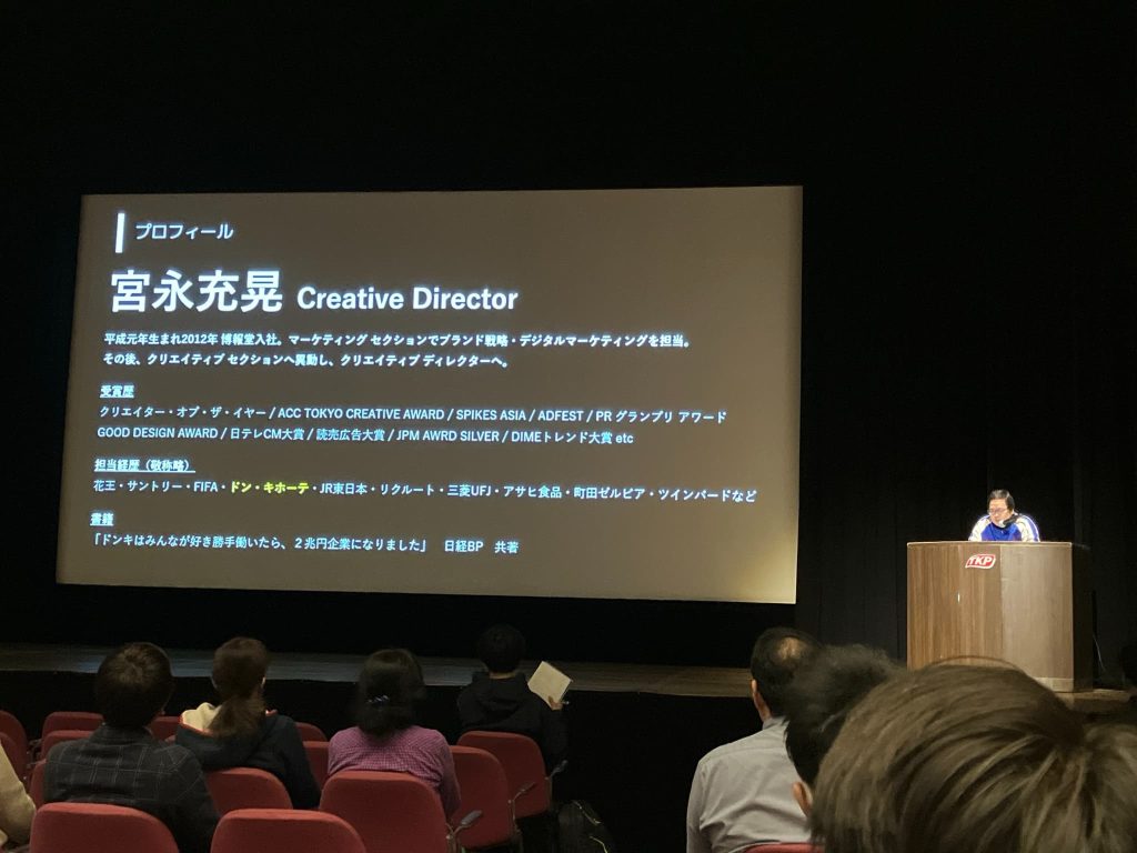 11月13日(木)前年のクリエイター・オブ・ザ・イヤーの宮永充晃氏(博報堂)、メダリストの星聡宏氏(ADKマーケティングソリューションズ)、山口千乃氏(TBWA\HAKUHODO)のお3方にご登壇いただき、講演会が開催されました。会場は、約350名の観客で埋まり、多くの学生の方にも、ご参加いただきました。研究会は、瞿曇会長(大広九州代表取締役社長)の主催者挨拶につづき、松井亘平氏(I&S BBDO コーディネーター・審査委員)のMCによりクリエイター・オブ・ザ・イヤーの趣旨説明、前年の受賞者などの説明のあと、それぞれ45分づつの講演となりました。観客のみなさんも最初から最後まで、静かに真剣に聞き入って、メモを取る姿、頷く姿も多くみられました。とても充実した講演会となりました。クリエイティブ研究会は来年も開催予定です。是非、ご参加ください。